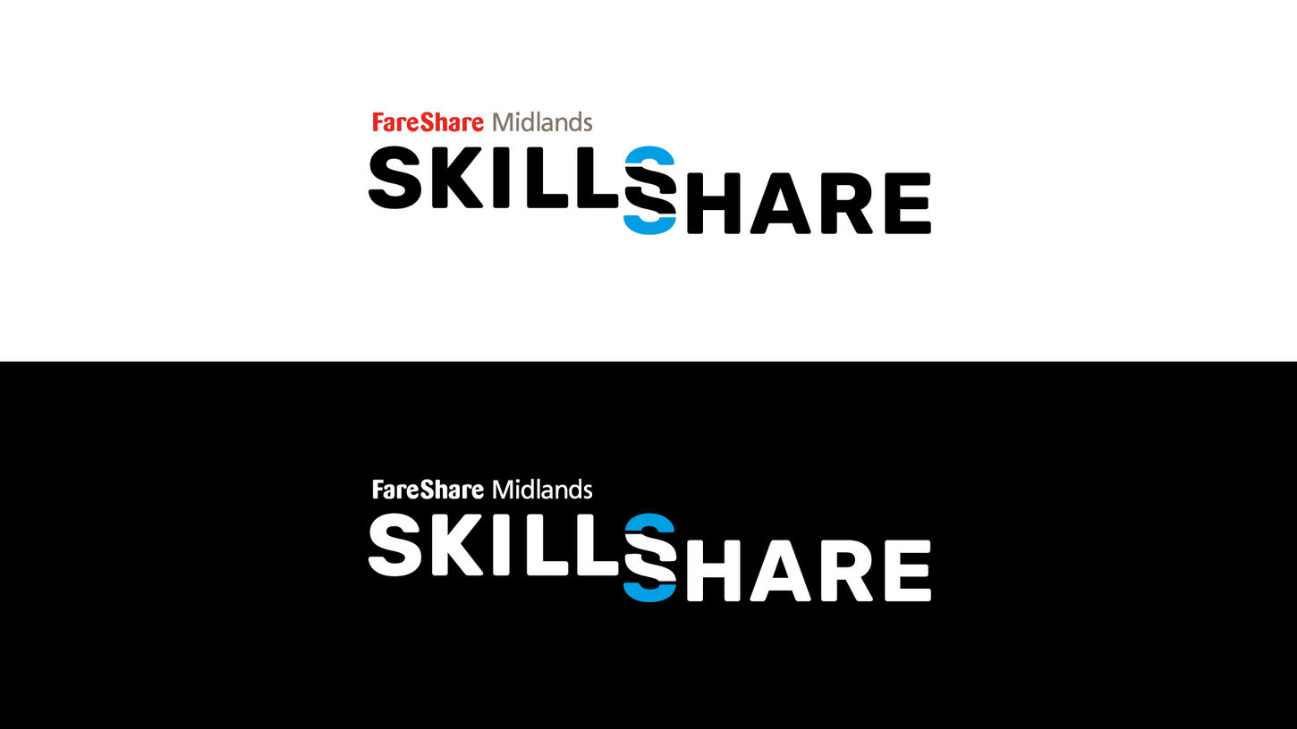 They had a name, SkillsShare, but it had no visual identity to be a consistent umbrella for a variety of programmes and that could be used raise their profile. The first thing to establish was how SkillsShare should sit within the parent FareShare Midlands brand and defining the approach to the identity.